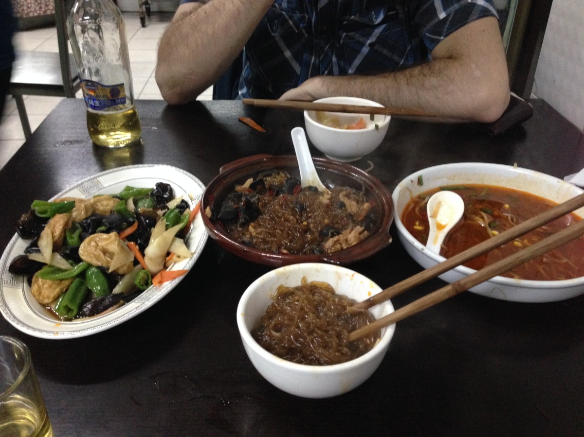 IMG_1637 Posted on April 15, 2015 by mariaenie Post a comment or leave a trackback: Trackback URL. Three course meal and two big beers at Lao Shi To a for 50 yuan … about 8 US dollars.